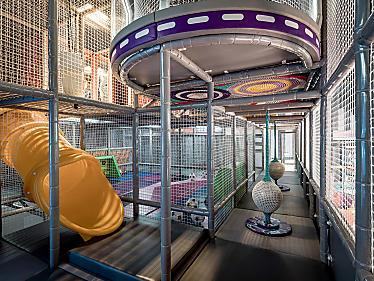 - iWall, Cyclobeat und Runbeat, Dodgeball-Feld, Mini Soccer-Feld, Basketall Shoot Out Challenge, Ninja Warrior Parcours, Playtainment-Castle, sowie unsere Jump- Crawl-und Slide Bereiche auf zwei Stockwerke